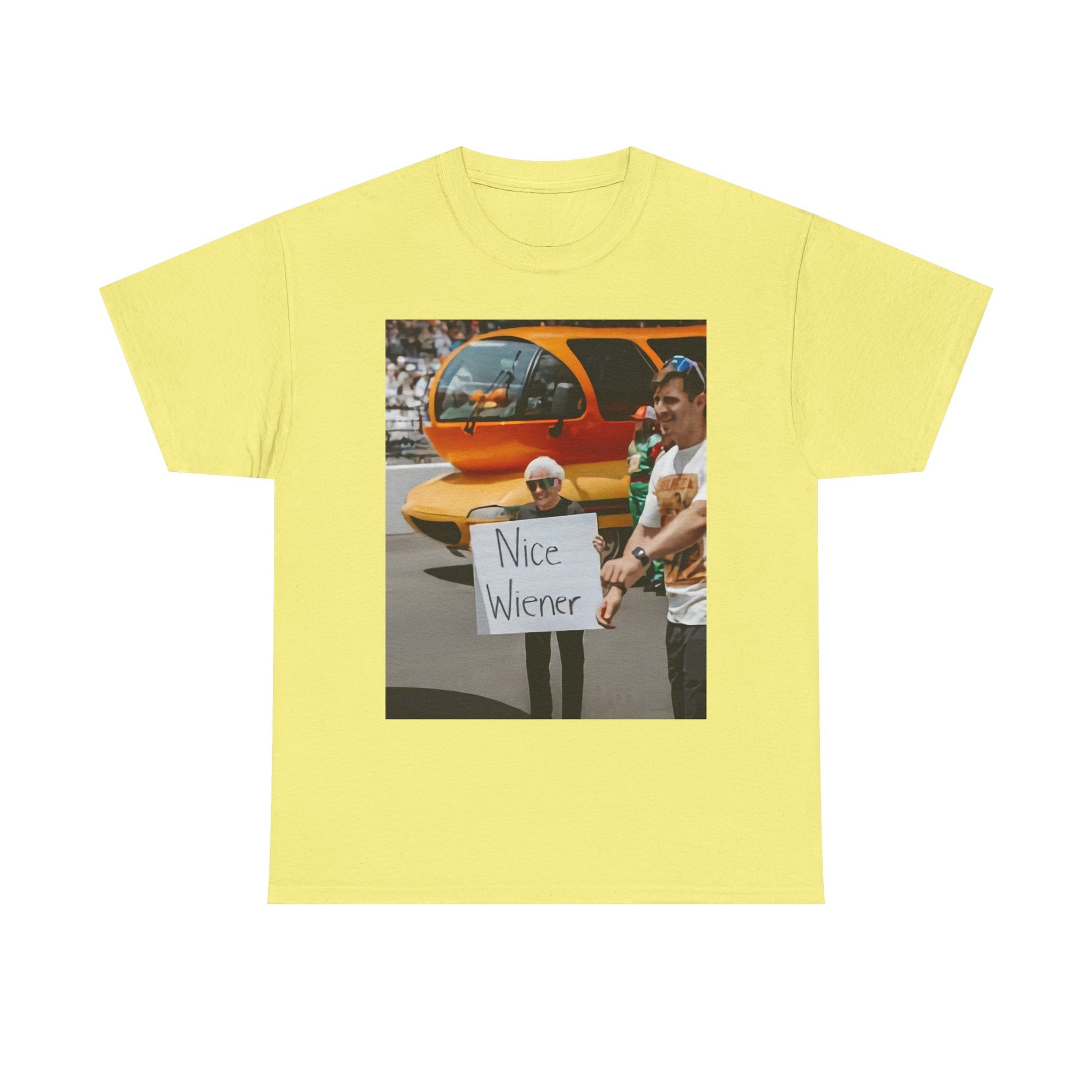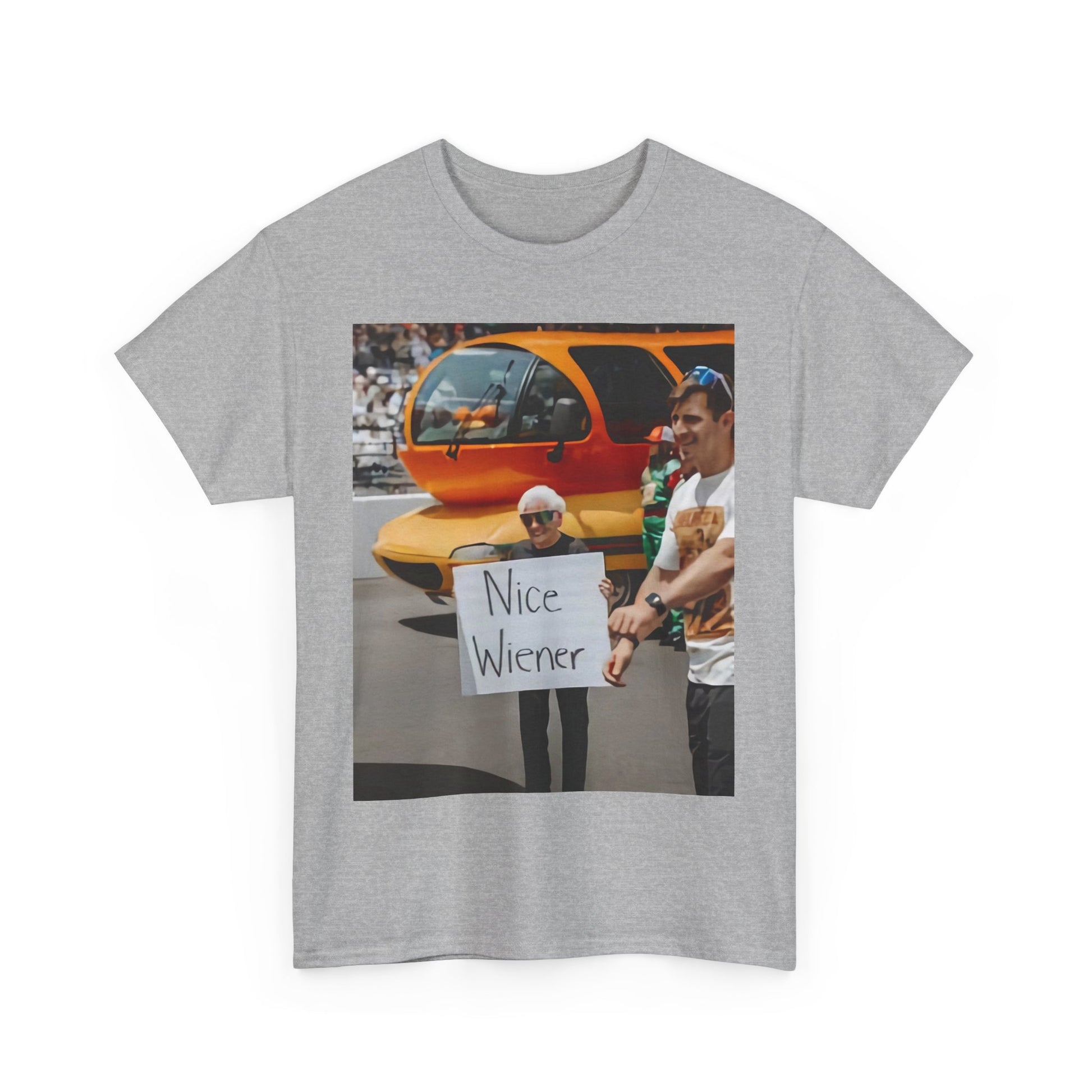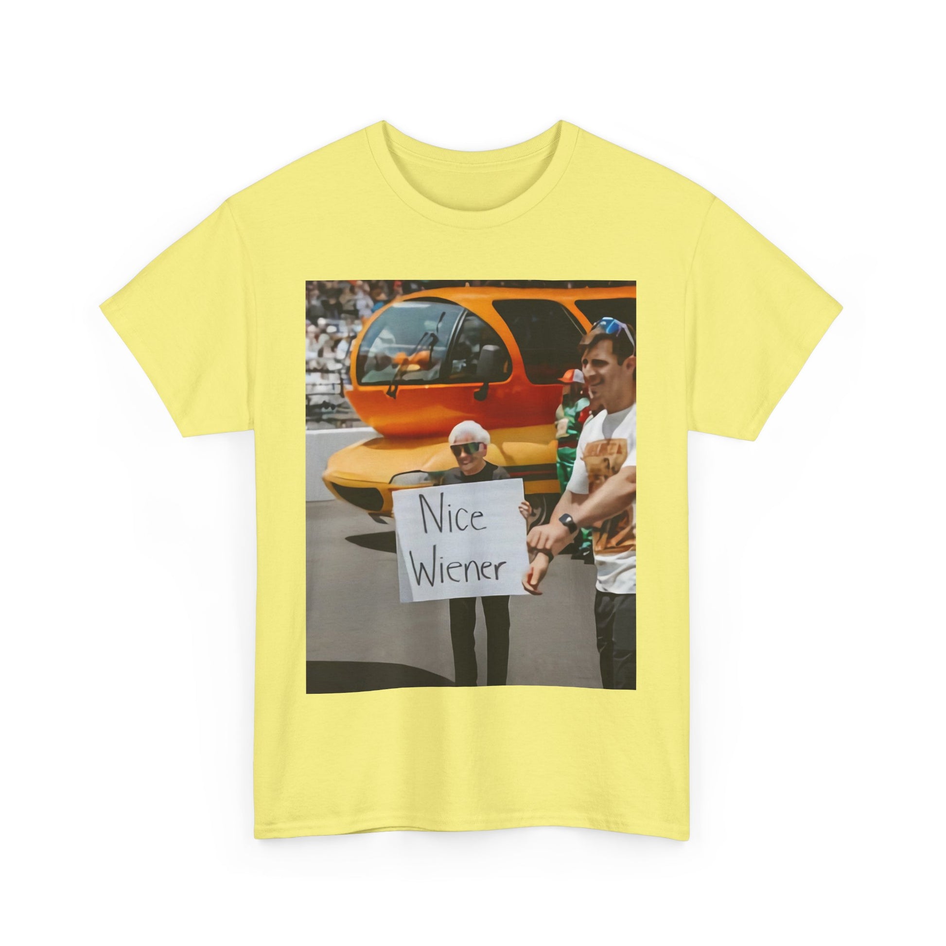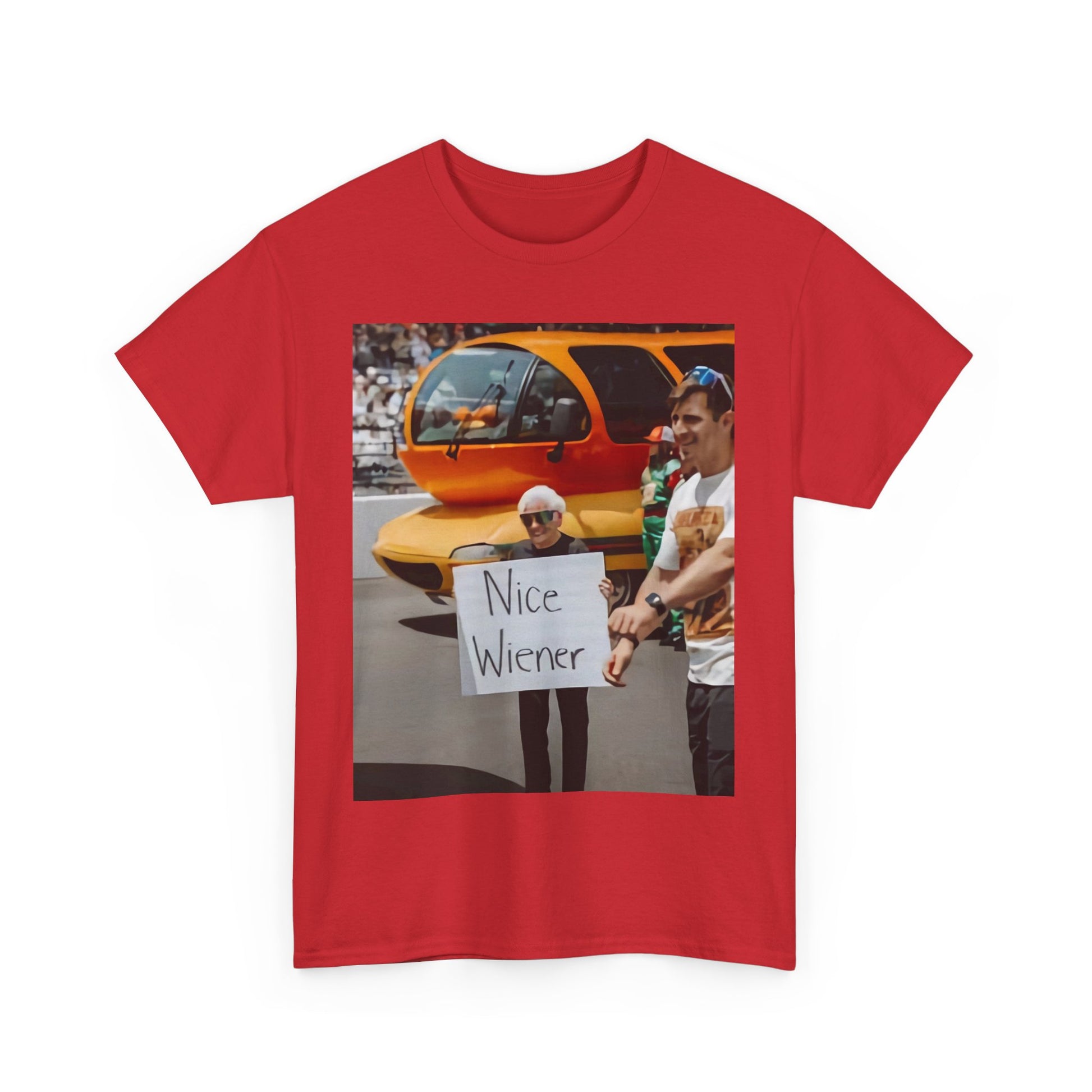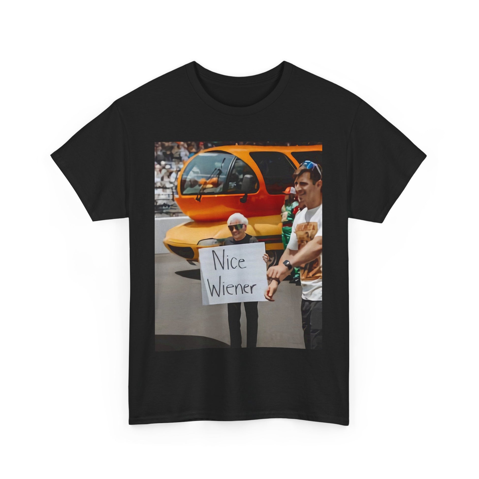 Energetic, playful, and powerful graphic T-shirt featuring the word “Nice Wiener ”